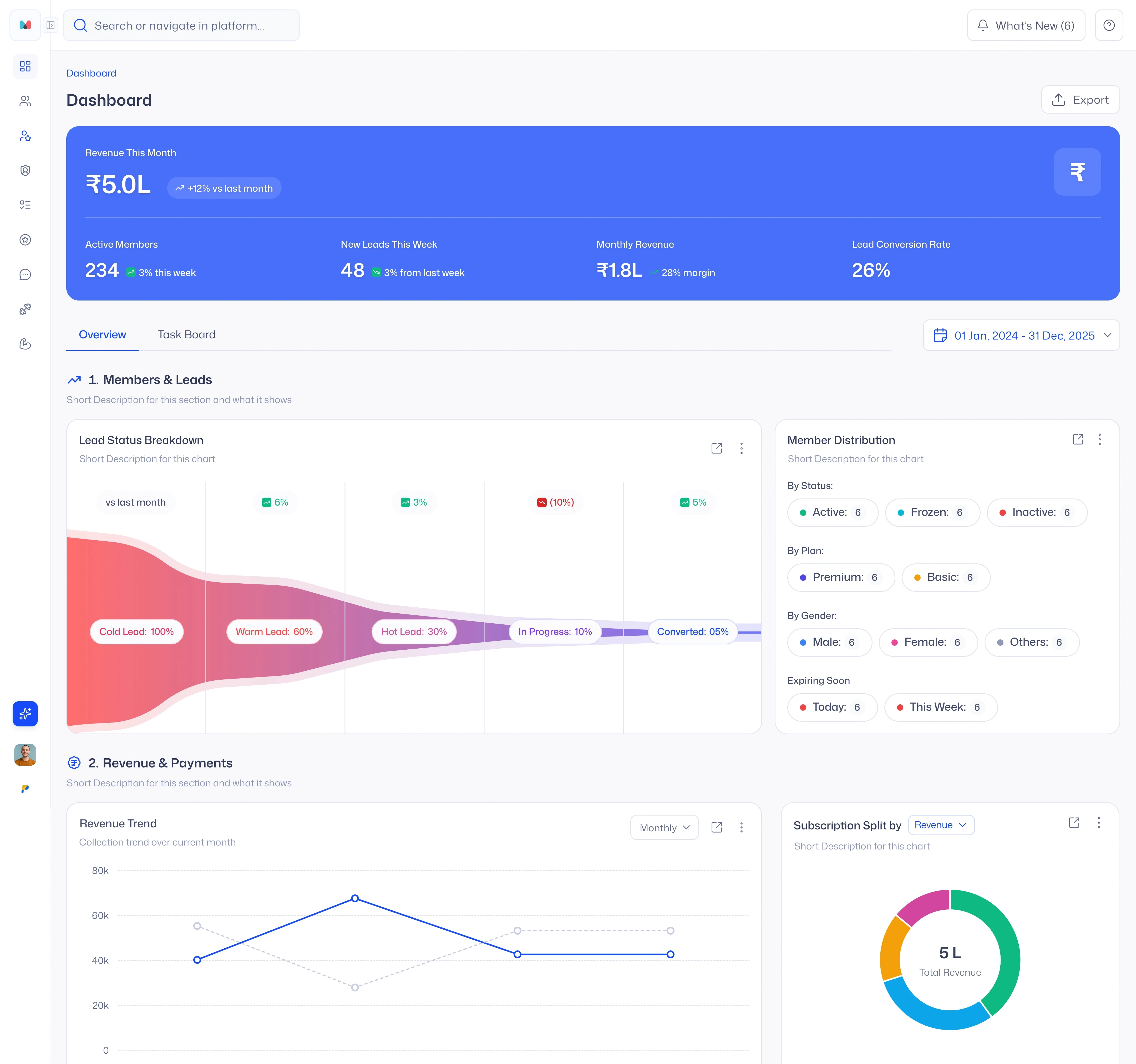 Most gym platforms are bloated, overpriced, and confusing. We’re the opposite. Say goodbye to spreadsheets, missed follow-ups, and confused members. Run your entire gym, from leads to lockers.